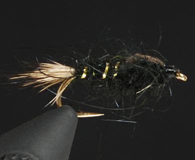 この色独自の楽しみ方としてリーチをイメージした釣り方があります。胸部から掻きだしたラビットファーを左右に出すように寄せ、フライ全体を水にしっかりと馴染ませます。ダウンかダウンクロスで沈ませながらテンションを張ってフライを泳がせるようにすると、手元にガツンというアタリがくるウェットの釣りがお楽しみいただけます。