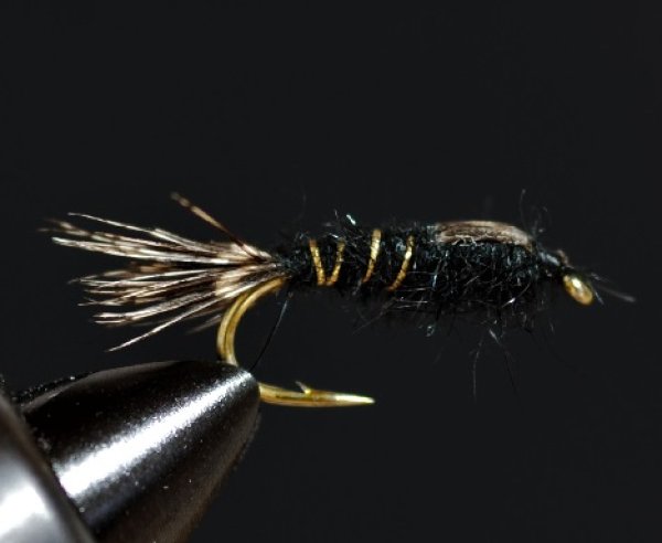 この色独自の楽しみ方としてリーチをイメージした釣り方があります。胸部から掻きだしたラビットファーを左右に出すように寄せ、フライ全体を水にしっかりと馴染ませます。ダウンかダウンクロスで沈ませながらテンションを張ってフライを泳がせるようにすると、手元にガツンというアタリがくるウェットの釣りがお楽しみいただけます。
